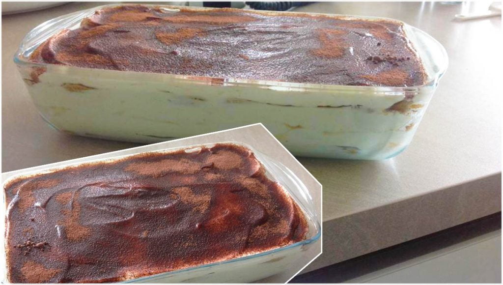 500 g Mascarpone, 150 ml Milch, 75 g Zucker, 1 P. Bourbon V. Z, 40 ml Amaretto. Alles schön zusammen mischen. ( habe heute noch 1 Becher Schmand reingetan, oh lecker. Mache jetzt immer mit Schmand). 400 g Löffelbiskuits, 200 ml kalte Kaffe ( habe da auch noch 20 ml Amaretto rein gemacht, mache immer.). Jetzt nur noch schichten, Creme, Löffelbiskuits , Kaffe, Creme usw….